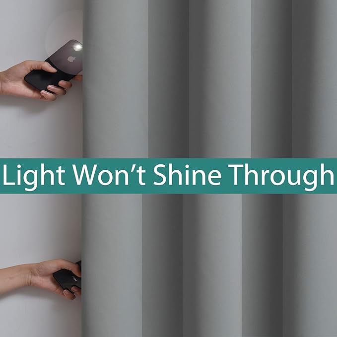 Yakamok 100% Grey Blackout Curtains for Bedroom, Light Blocking Thermal Insulated Noise Reducing Blackout Drapes for Living Room(62Wx63L, 2 Panels)