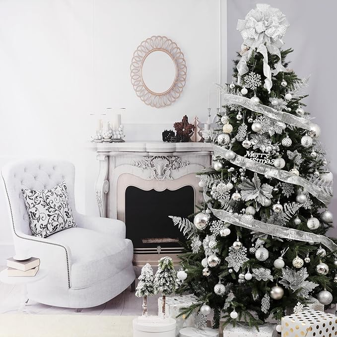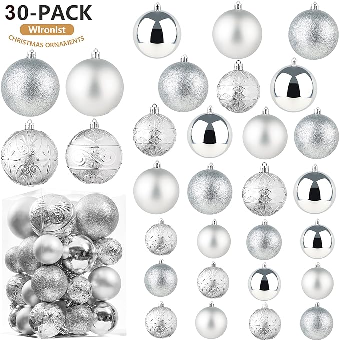 Wironlst Christmas Ball Ornaments - 30pcs Shatterproof Plastic Christmas Ornaments Hanging Ball Decorations for Xmas Tree, Holiday, Wedding, Party (Multi-Size, Silver)