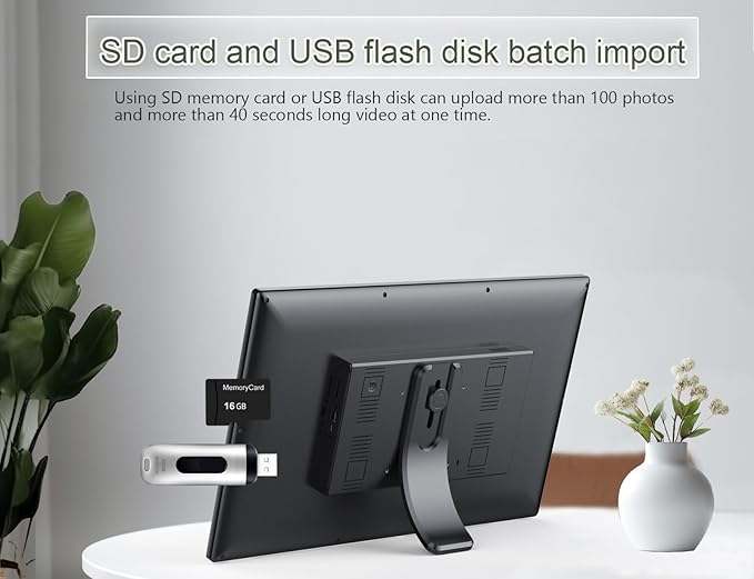 - Auto-Rotate And Large 32GB Memory :YunQiDeer digital picture frame can automatically rotate photos to adjust the direction, allowing you to view the photos in either portrait or landscape mode. Can be wall mounted. built-in 32GB storage which can store 100000+ pictures ,It also supports the micro SD memory card connectivity to enable you to export or import photos and videos for better album management.