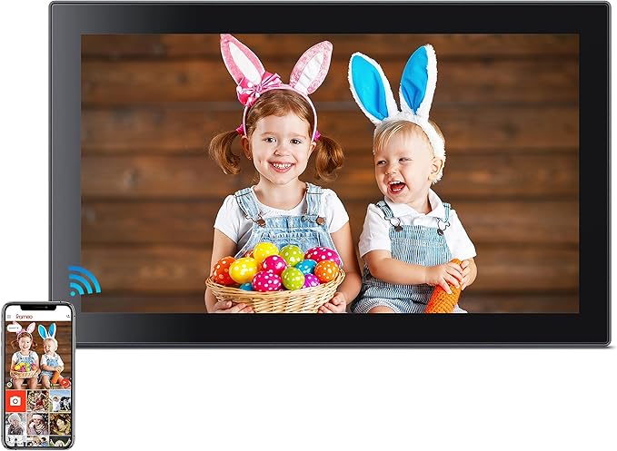 - Share Photos And Video Privately,Safely:With the free app "Frameo" (available for download from Google Play and App Store), you can quickly and easily share your good time with your loved ones. Send photos or small videos (max. 15 seconds) directly to FRAMEO APP from anywhere in the world,the APP lifetime with zero subscription fee, friends and family can enjoy your wonderful moments within seconds on The wifi digital photo frame.