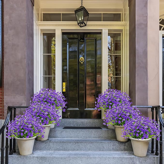 - Perfect for Outdoor/Indoor - Plastic flowers are ideal for outdoor porches,walkway,terraces windox box,front yard,pots,hanging planters,gardens,landscape,windowsills,allow you have beautiful color all year around.Also suit for birthdays,weddings,memorial place or grave,they can live anywhere and have withstood heavy rain storms and winds