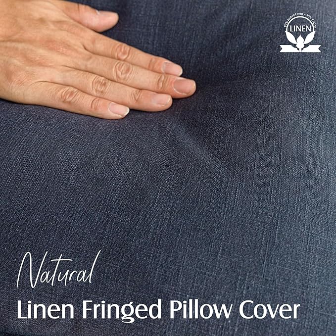 Foindtower Set of 2 Decorative Linen Fringe Throw Pillow Covers Cozy Boho Farmhouse Cushion Cover with Tassels Soft Accent Pillowcase for Couch Sofa Bed Living Room Home Decor,18×18 Inch,Navy Blue