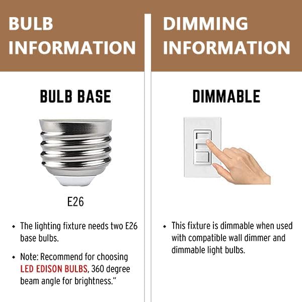 - 【E26 Dimmable Socket】The drum light fixture is compatible with US standard E26 bulb (Max 60W), including LED, CFL, incandescent and halogen bulbs. It is also fully applicable to dimmable bulbs and dimmer switch. You can create different atmospheres by using different bulbs.(Note:Bulb and dimmer switch are not included)