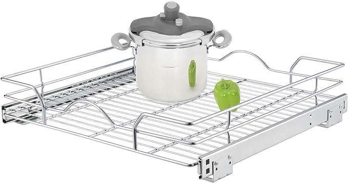 - 1 Tier Sliding Wire Basket: Organizing your cabinet space just got easier with the OCG slide out cabinet organizer. Now you can make the most of cabinet space and easily access all your pots, pans, small kitchen appliances, cleaning products, canned goods, and other items.