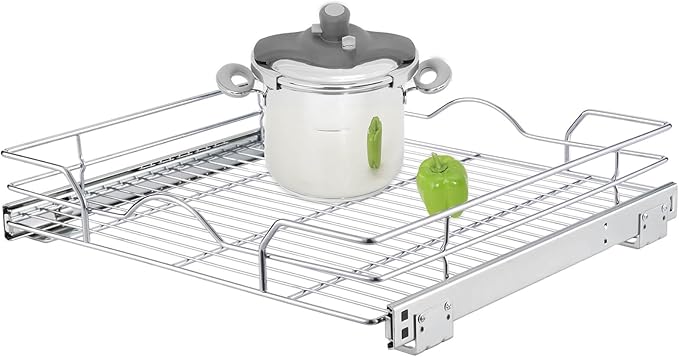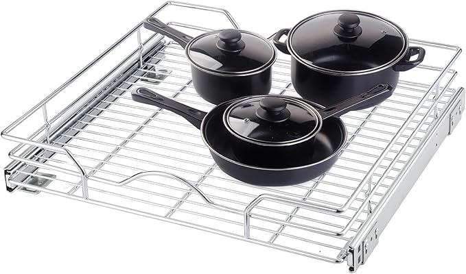 OCG Pull Out Cabinet Organizer (17.75" W x 17" D), Pull Out Drawers, Cabinet Pull Out Shelves for Base Cabinet Organization in Kitchen Bathroom Pantry, Bottom Mount, Chrome Finish
