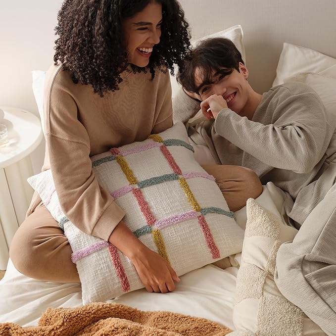 - 【Modern Boho Elegance】: Offering both a chic checkered neutral design and a vibrant, multi-colored tufted pattern, these throw pillow covers effortlessly add a touch of contemporary bohemian flair to any space, be it your balcony, bed, or sofa.