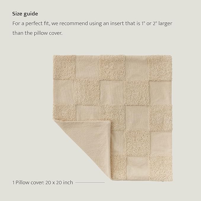 Double Stitch Checkered Throw Pillow Covers - 100% Cotton Tufted Boho Decorative Pillow Covers 20x20, Made in India, Square Plaid Cushion Case, Modern Home Decor for Couch, Sofa, Living Room, Oat