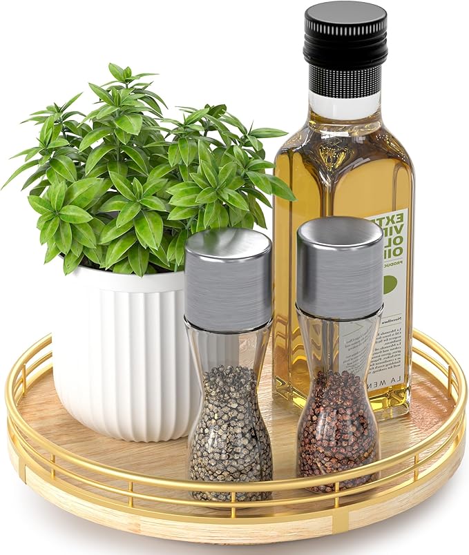 - πππππππππ πππ:This lazy susan is enough to be used nearly anywhere, perfect in the kitchen, cabinets, dining room, office, etc. on your kitchen or dining table for organizing condiments, napkins, decor, candles. Easily reach all your medicine, spices, canned goods in your pantry. Next to your stove, hold all the essentials essences, bowls, greenery, and a butter dish. Good idea for the office desk and craft room to organize. Keep your coffee stuff perfect at your coffee station.