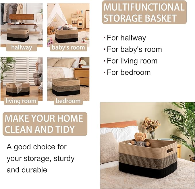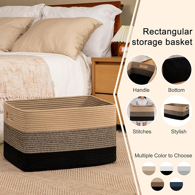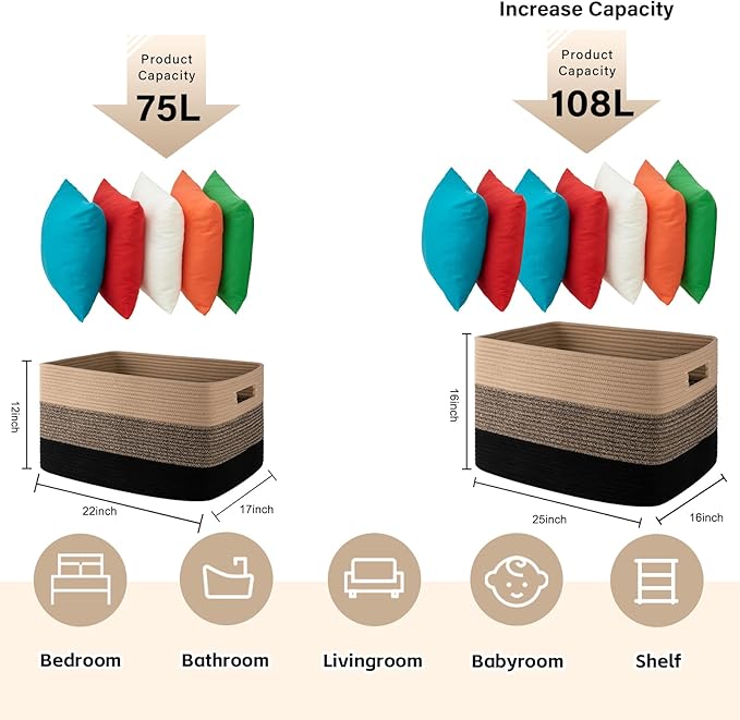 - Decorative Blanket Storage for Living Room:This rectangular blanket basket is more stable and easier to restore its sahpe after you receive the package. The 22’’ x 17’’ x 12’’ large storage basket can also used to store blankets, pillows, cushions, toys, clothes and towels