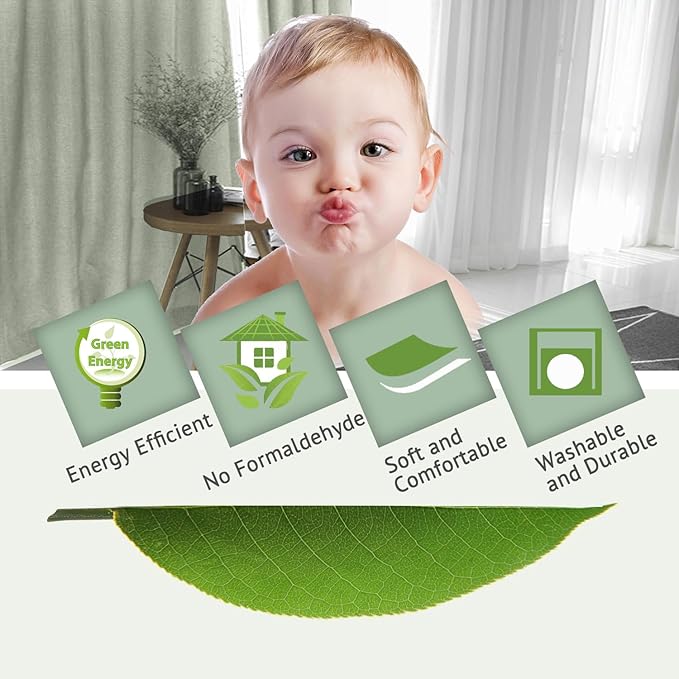 - INNOVATED MATERIAL: These casual linen draperies are crafted from rich linen like fabric (100% polyester), added with 100% blackout lining, draped and soft, block the wind and reduce the noise. Lab test shows these awesome curtain panels are environmental and vinyl free