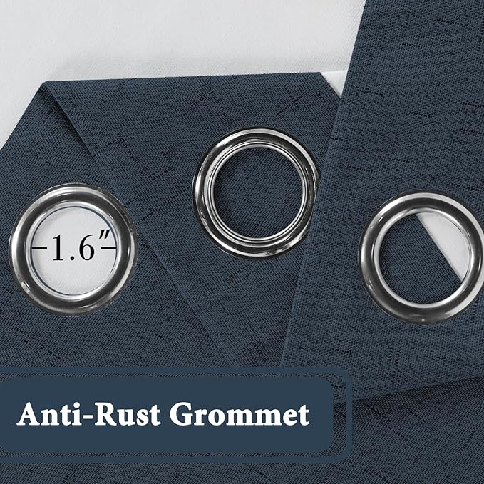 - STANDARD SIZE: Sold per single panel in package, panel measures 52 inches wide by 96 inches long, each faux linen curtain panel has 8 anti-rust grommets, inner rim of grommet is 1 5/8 inch which fit the rod up to 1 1/2 inch, slides smoothly back and forth