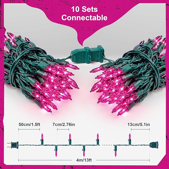 - ๐Connectable Halloween Lights: Purple string lights can be End-to-End connected. Up to 10 sets,lighting range can be extended to 130ft. With this convenient function,you can do the DIY decoration on any occasions:Halloween ,Eve party, ghost festival,Christmas, music festival, birthday party, graduation party, garden, deck, bedroom.