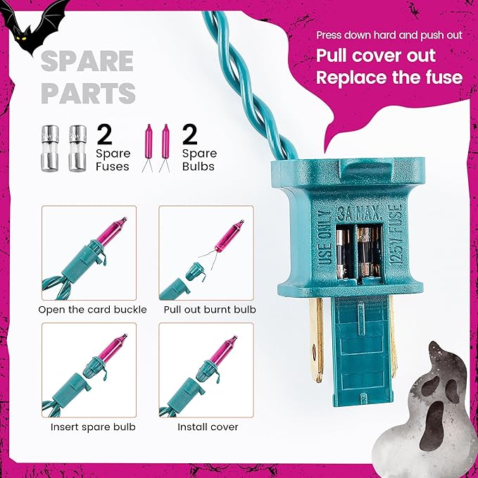 - ๐Unique Design Halloween Lights: The bulb has a snap-on design and is very easy to replace. When one of our bulbs breaks, it doesn't affect the other bulbs. This is a very special design. You can replace damaged bulbs individually with the spare bulb or fuse provided by us.