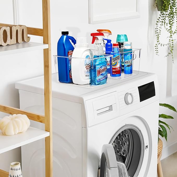 - Clear Containers for Organizing: Clear design of these Sorbus Bathroom Storage Bins allows you to view what’s stored inside effortlessly - Access and restock your essentials in seconds - Save time and hassle searching through clutter - Group cleaning supplies together - Grab and go, easy access!