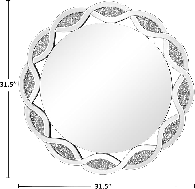 Crystal Decorative Mirror-32 x32 Gorgeous Silver Mirror Crush Diamond Mirror for Wall Decoration Bedroom Bathroom Dining Room and Living Room
