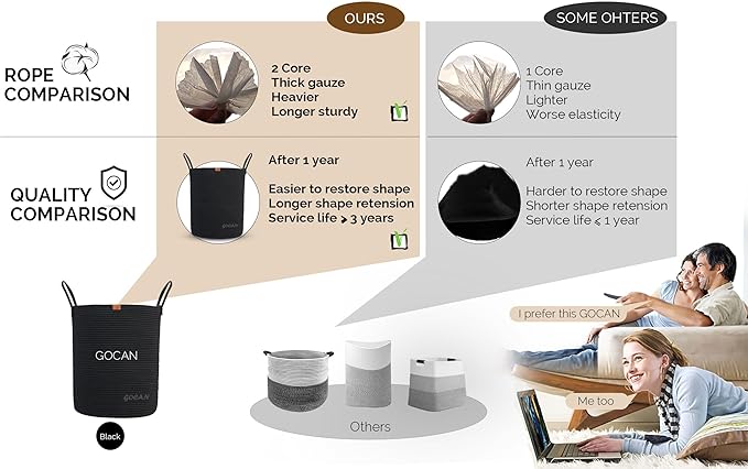 - 【Well Handmade & Higher Quality 】All GOCAN woven baskets are meticulously and purely handmade by skilled workers with sewing machines. During shipping, it is inevitable to fold and there will be creases. Please understand and forgive this, but we use two high elasticity cotton cores, which are easier to restore shape and more sturdy to use.Cotton thread is finer and feels better.