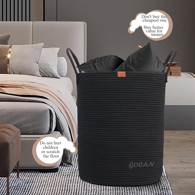 - 【More Suitalbe Size】Perfect size to use,Heigth 20.37"/50cm, Diameter 15.48"/38cm, not too big or small to use.cotton rope storage basket are big enough to store laundry, blankets, comforters, duvets, throw pillows, cushions, and stuffed animals, winter clothing, to keep your living space neat and tidy! Perfect way to keep things organized in a stylish and decorative way.