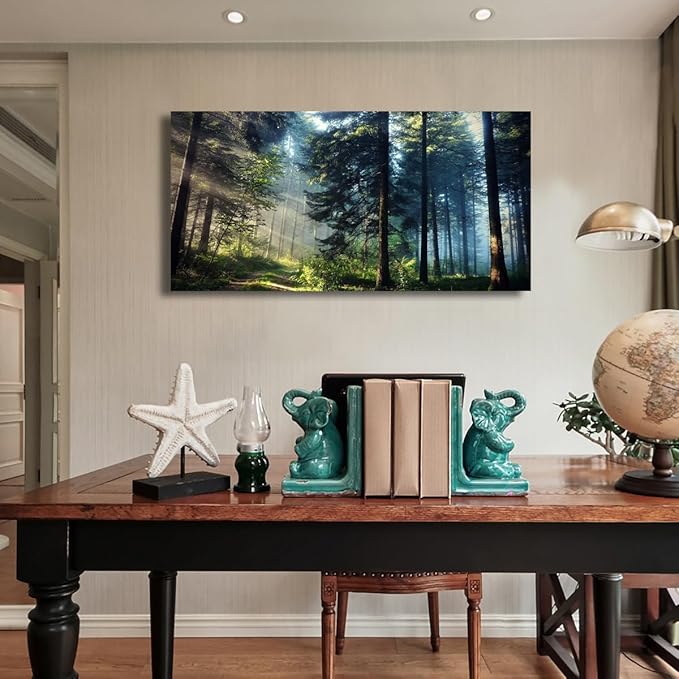 - Green forest tree painting canvas wall art picture frames size:24 x 48inches x 1pcs(60 x 120cm x 1pcs), The canvas prints stretched and each panel has a black hook already mounted on the wooden bar and easy hanging.