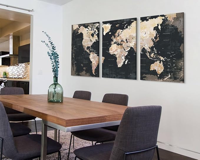 - DECORATIVE MAP - Professionally printed works of art on quality canvas. Each panel is 23.6" by 35.4", set of 3, the overall size is 70.8" x 35.4"