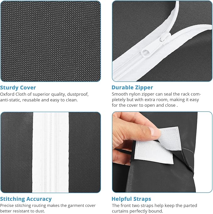 - PROTECTIVE COVER: Comes with a reliable Oxford cloth cover that can help keep your clothing and shoes dust-free, making it an ideal storage solution for changing seasons. The cloth cover is easy to install and remove, and the zippers provide easy access to your stored items.