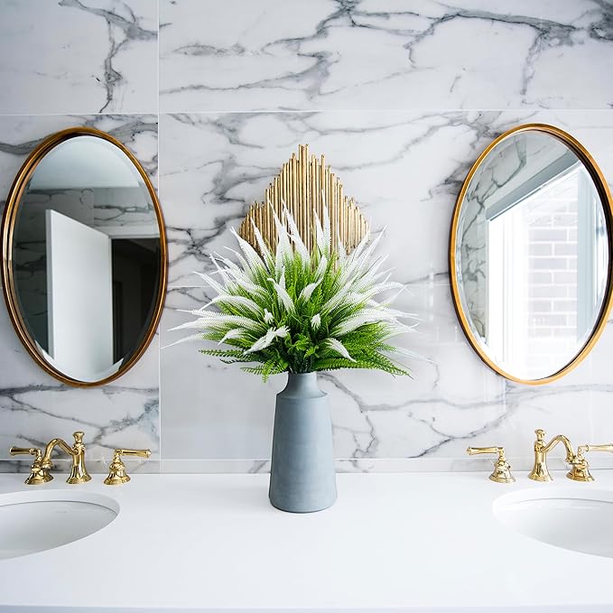 12 Bundles Outdoor Artificial Plants Flowers UV Resistant Fake Grass Plants Tropical Faux Bushes Shrubs for Home Front Porch Outside Planter Garden Landscape Décor