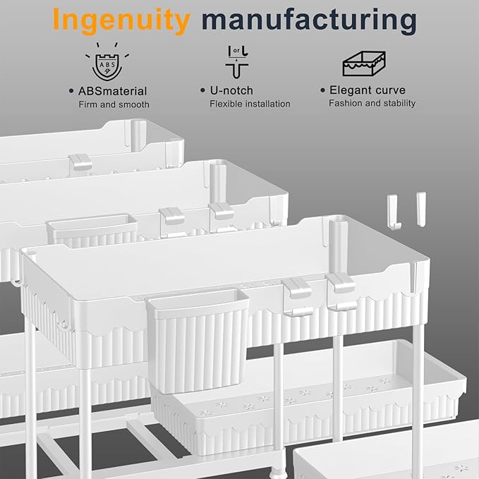 - [Super Easy Setup]: No tools? No problem. These undersink organizers are a breeze to put together—just follow the step-by-step guide or check out the quick how-to video. You’ll have everything set up in about 3 minutes. Seriously, it’s that easy
