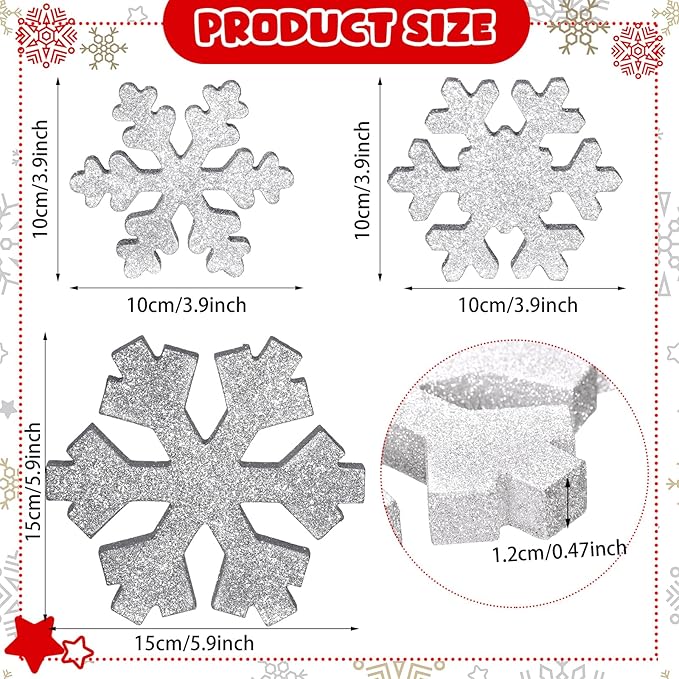 - Work for Different Places: the snowflake home decor is not only suitable for placing on the table, you can also add it to your tiered tray, kitchen cabinets, coffee bars, windows, rooms, fireplaces, dining tables and other places, it can go well with other decorations, creating a nice Christmas surrounding to you