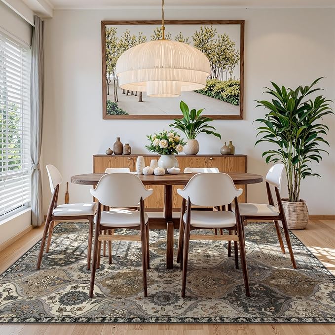 - Kid and Pet Friendly: Stain-resistant and dining room rug designed to withstand constant use and jumping from children and pets. The low-lint design can effectively prevent the accumulation of hair and dust, creating a clean environment for children