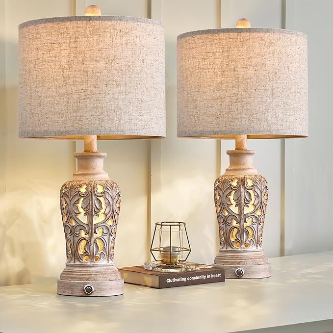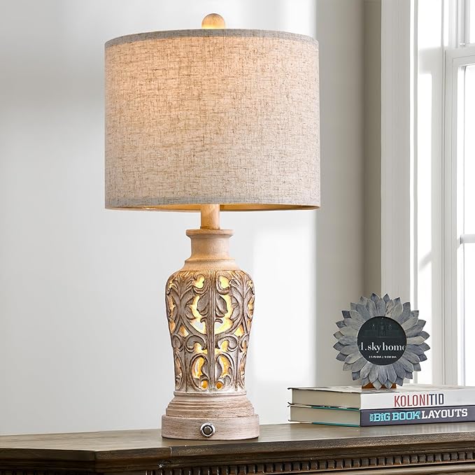 - Retro Farmhouse Lamp:The whole lamp body is a vase shape of beige and white retro hollow pattern, and the material is antique white resin. The top half is wrapped in a quality linen lampshade. The nightlight lamp as is very retro and elegant and will create a romantic, warm and cozy atmosphere for any corner of the house. Suitable for living room, bedroom, hall, dormitory, dining room, office, study and any room you like.