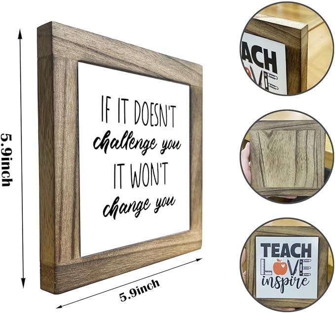 Inspirational Wood Sign, Box Wood Plaques Desk Décor, Home Gym Decor Set, Classroom Decor, Wooden Plaque Gift Tabletop, Motivational Fitness Sign, If It Doesn't Challenge You It Won't Change You