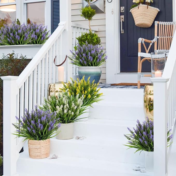 - 【Artificial Outdoor Plants' Package】Package include 12 bundles of artificial lavenders grasses, each stem is about 14.6inch, each bunch has 7 flexible stems and 4 pairs of leaves and one flowers. The leaves are movable, so the length can be adjusted according to your needs.