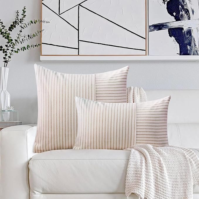 - ★★★Modern Simple Design: Decorative pillow covers with a modern yet simplistic aesthetic. Colors stripes with patchwork create a modern look. The invisible zipper closure adds an elegant touch—perfect for rustic farmhouse home decor. Use these throw pillows to bring your decorating ideas to life.