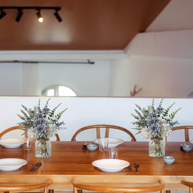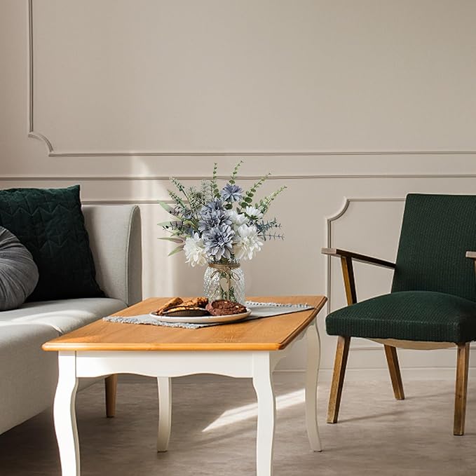 Leftover Fake Flowers with Vase,Silk Dahlia Flowers,Artificial Flowers in Vase,Centerpiece Table Decorations,Flower Centerpieces for Tables,Kitchen Table Decor,Coffee Table Decor