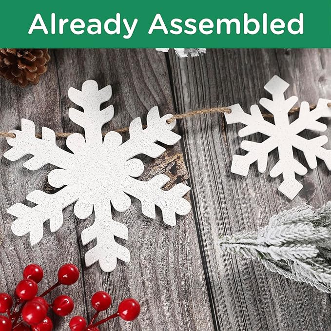 - What you will get a wooden winter white snowflake garland banner, small & big snowflake approx 4 inches(small) / 6 inches(big) in width, garland banner with a natural jute rope measuring approx.60 inch/ 5 feet.