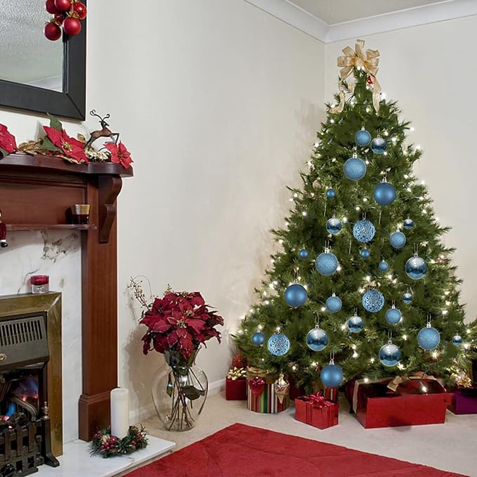 Christmas Balls Tree Ornaments, Shatterproof Christmas Decorations Set with Reusable Hand-held Gift Package for Holiday Xmas Tree Decor (100, Navy Blue)