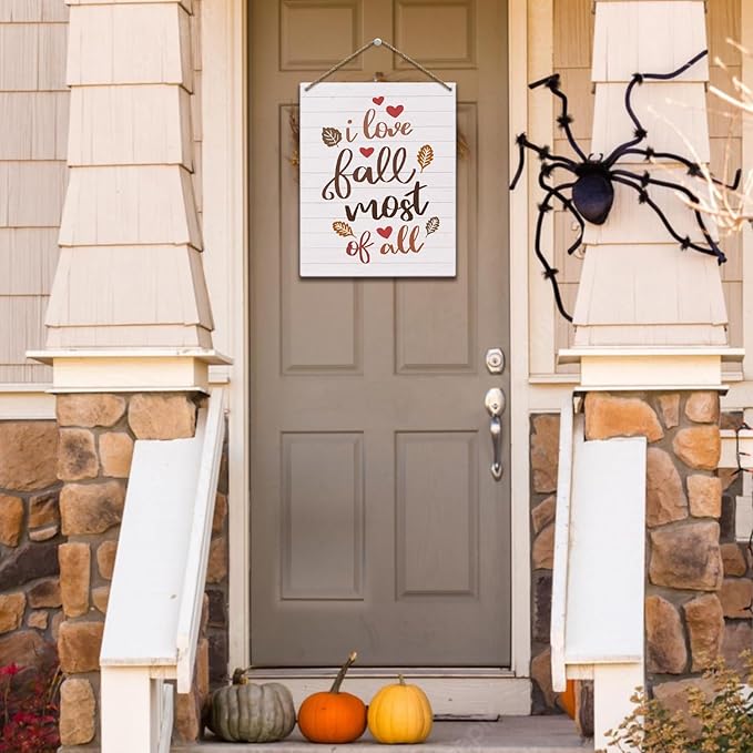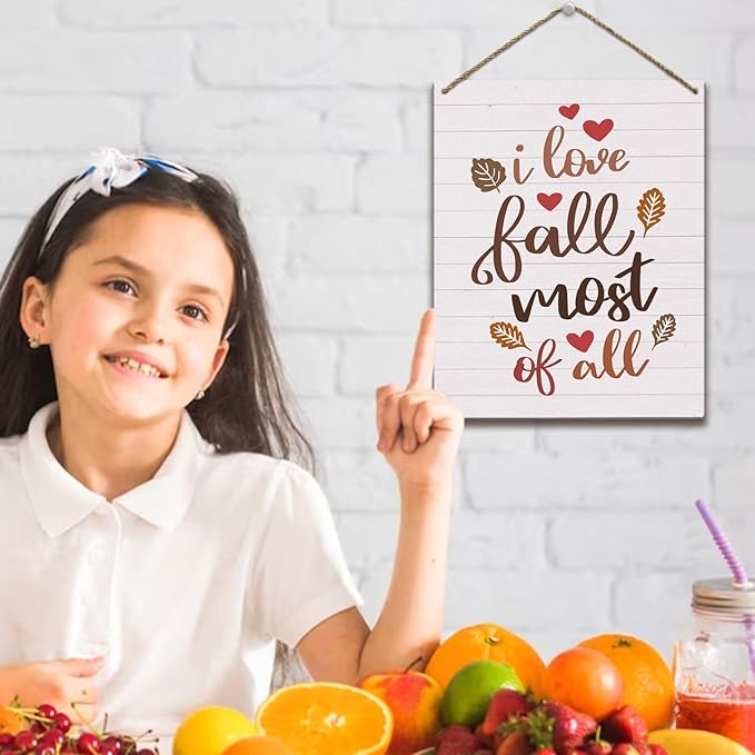 Love Fall Sign Autumn Thanksgiving Fall Decor Rustic Wood Sign Wall Decor for Home Farmhouse Living Room Bathroom Kitchen Seasonal Harvest Decorative Wooden Wall Hanging Decor Plaque