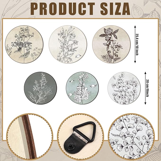- Convenient Sizes for Versatile Decor: offered in 2 sizes, with diameters of 8 inches and 10 inches, these vintage botanical prints can complement various spaces; Use them as single pieces or put them together; Their sizes will allow for a myriad of decorative possibilities