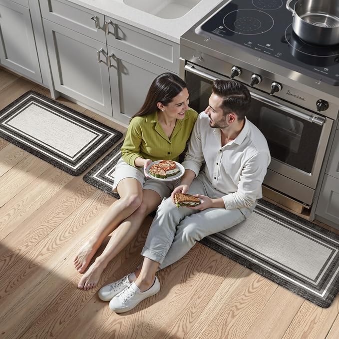 KIMODE Anti Fatigue Kitchen Mats,Non Slip Farmhouse Kitchen Rugs Sets 2 Piece,Waterproof Kitchen Mat for Floor,Cushioned Standing Mat for Office,Laundry,Sink,Desk,Black and Grey