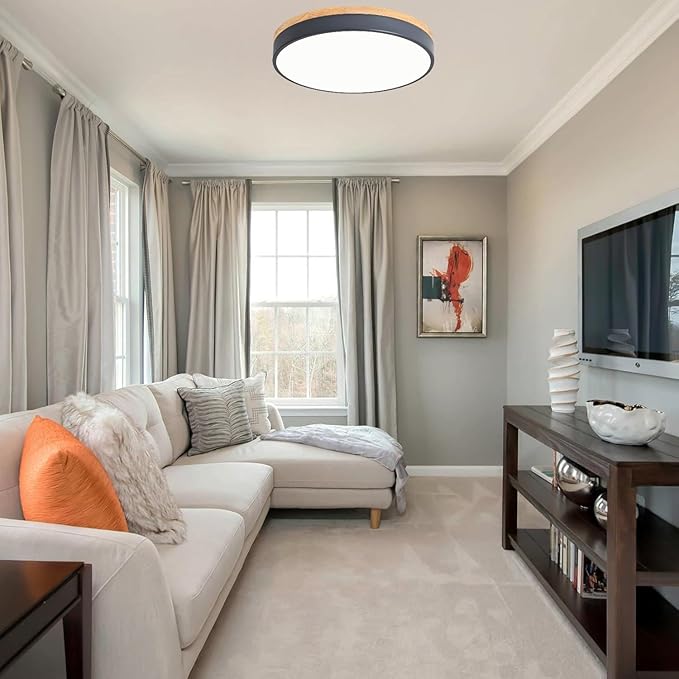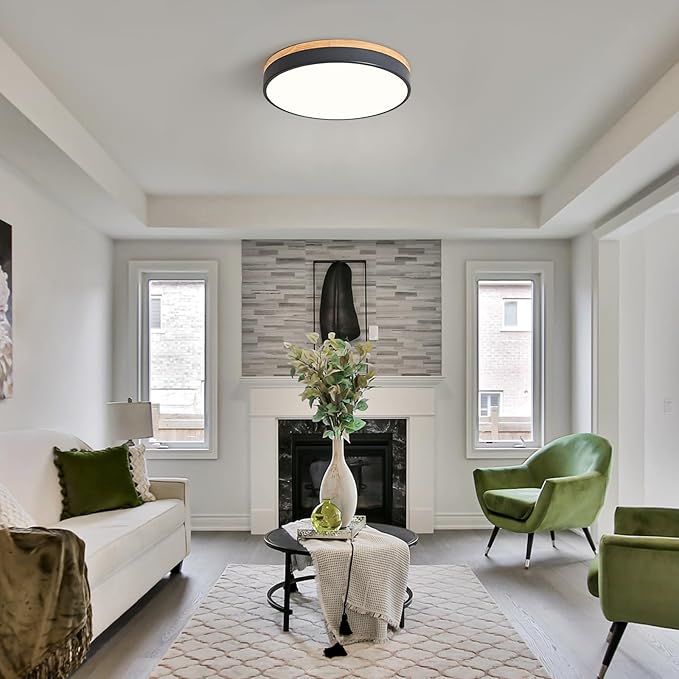 - Simple Design and Material: This 15.74 inch ceiling lamp made of hard metal and wood frame, acrylic light cover. The solid wood surface is glossy, uniform in color and clear texture. Acrylic lampshade with good light transmission performance, which can keep eyes from glare lighting. Inspired by Scandinavian design, simple but not oppressive