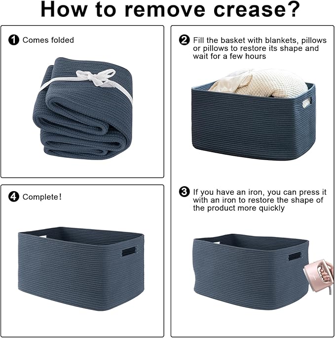 - NOTE: The toy basket is folded, but it will turn back to its elegant shape quickly if you fill it with some pillows or blankets, and iron is great idea to remove the creases