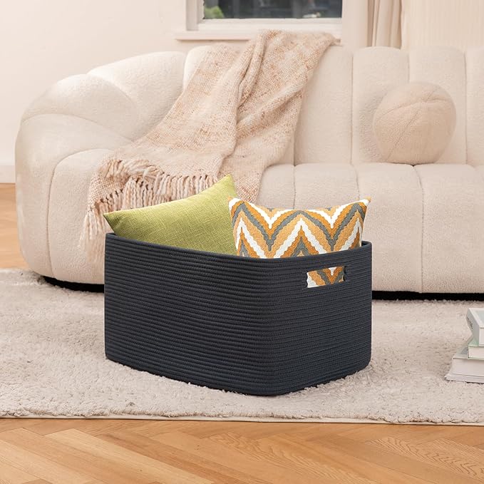 - Double reinforced Handles:We use the highest grade cotton rope as raw material and all the stitches are distribution and fine,which makes the toy baskets better wear resistance and durability to be used for many years.In addition, the handle of this large basket has a unique design and is wrapped around with thick double-layer suture rope to prevent tearing and keep its shape and never fall off