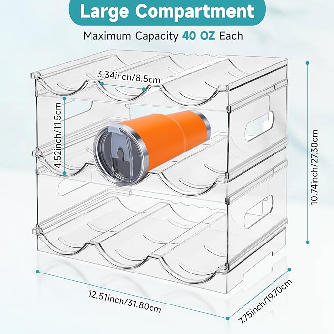 - LARGE CAPACITY: This water bottle organizer for Stanley 40 oz is made of high-quality and enduring PET anti-shatter material. Each shelf can hold up to 3 water bottles. We have upgraded the product by increasing the spacing between the two partitions to 4.3 inches, which can accommodate larger water bottles, helping you better organize large water bottles or cups in your home