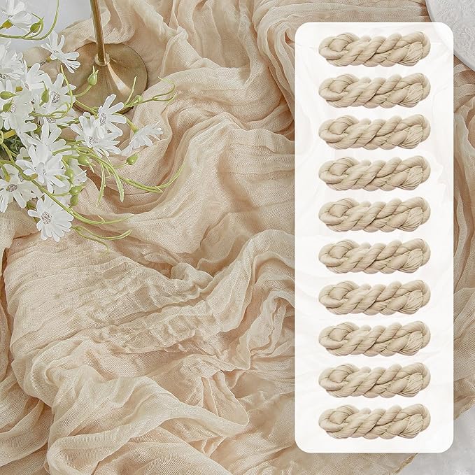 - [Package] You will get 10 Pcs, 35W"x120"L(10FT) beige cheesecloth table runner. Each 10FT long is perfect for 3-4FT long table.