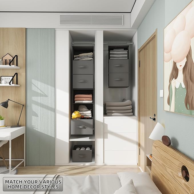 - Versatile Storage: Closet organization system equip your space with 6 shelves, 3 removable drawers, and 4 side pockets, for efficient organization of clothes and accessories.