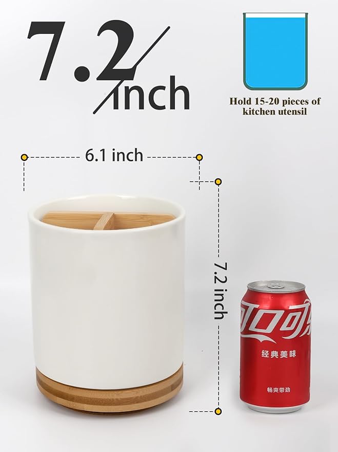 - ๐ดLarge & Deep Enough: 7.6" H x 6.2" W. Large enough for storage 20 to 25 pieces of utensils, it can accommodate all the frequently used utensils on the counter . A convenient solution for overflowing kitchen drawers and countertop clutter.
