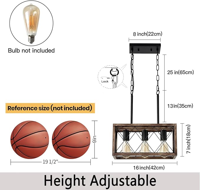 - Farmhouse Decor: This dining room light uses a wood-grain color finish to create a rustic wood feel that is not actually wood but metal, making it more durable and the Suitable showcase for country cottage and farmhouse aesthetics!