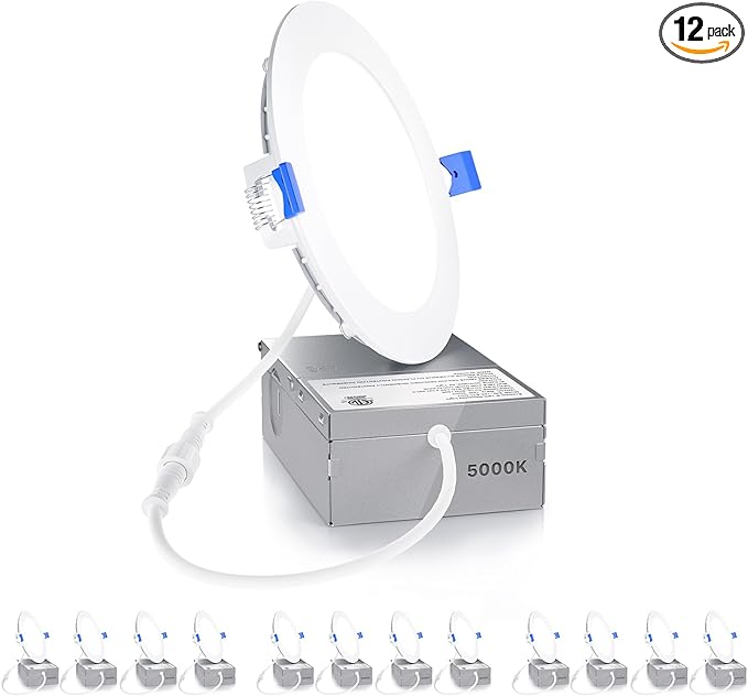 Ensenior 12 Pack 6 Inch LED Recessed Ceiling Light, Dimmable, 5000K Daylight, 1050LM 12W 120V, High Brightness Canless Wafer Downlight - ETL&FCC&IC
