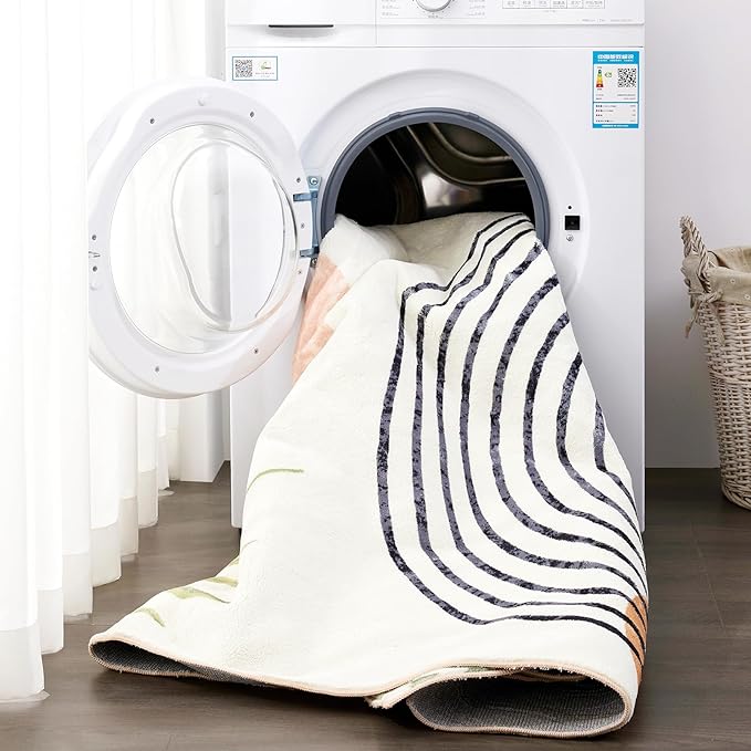 - [NON SLIP TPR BACKING] -- The non-slip TPR backing prevents slipping, tripping and holds the aesthetic accent rug more firmly in place. This neutral rug used upgraded material makes mat odor-free and protect your floors from moisture and scratches