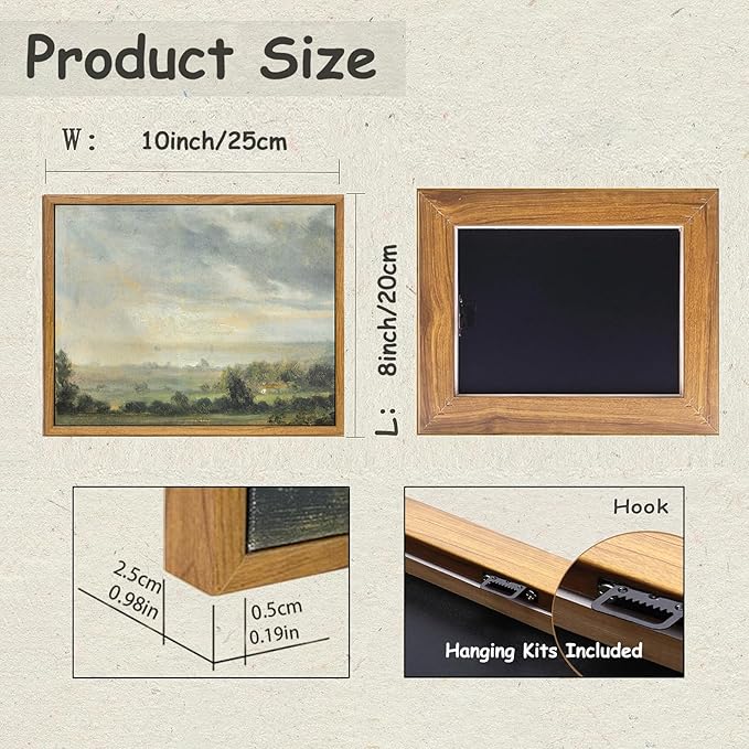 - 【Ready To Hang】Measuring 8x10Inch(20x25cm), this framed canvas art wall decor arrives ready to hang on the wall with hanging kits. (Before nailing the hook onto your wall, please refer to the installation instruction image provided. ) This vintage wildflowers meadow landscape art piece will bring a soothing effect to any room of your home with its calming colors. This antique landscape print is perfect for farmhouse style spaces with a bold elegance that makes it an iconic centerpiece for you.