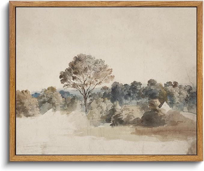 KBKBART Framed Vintage Neutral Wall Art Prints, Antique Rustic Muted Landscape Canvas Painting, Retro Countryside Nature Wilderness Illustrations Farmhouse Decor, Neutral Vintage Decor Ready To Hang